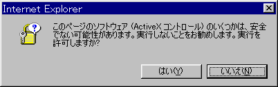ActiveXを実行するときに以下の警告が表示されたときは、「はい」を選んでください。